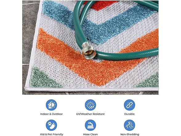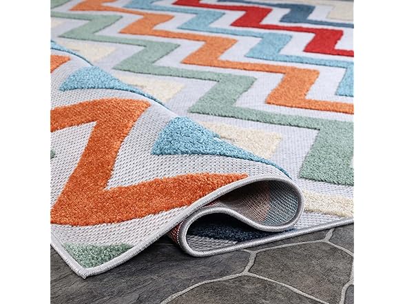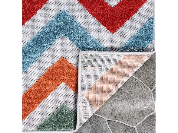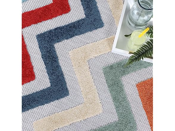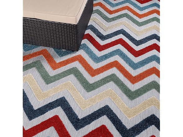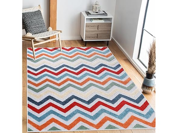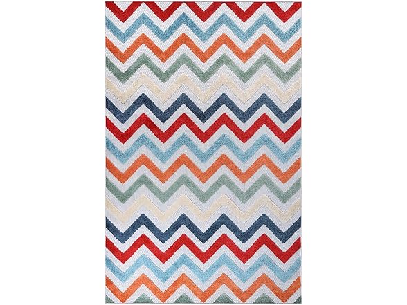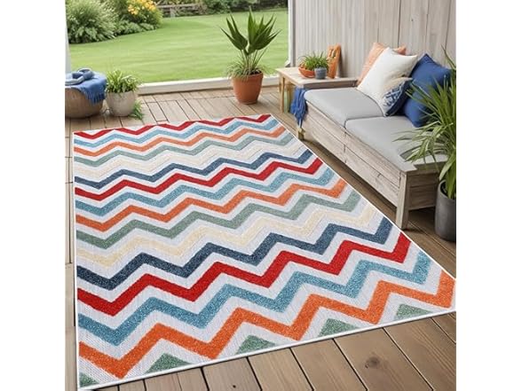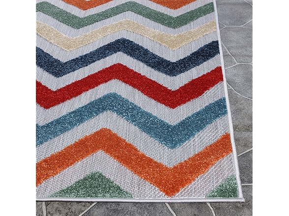 Superior Chevron Indoor Outdoor Area Rug, Perfect for Patio, Poolside, Backyard, Playroom, Kitchen, Bedroom, Dining Room, Entryway, Mudroom, Coastal Zig-Zag Floor Cover, 4' x 6', Multicolor