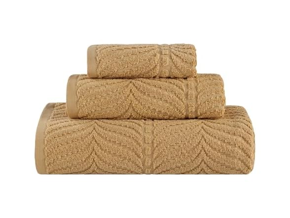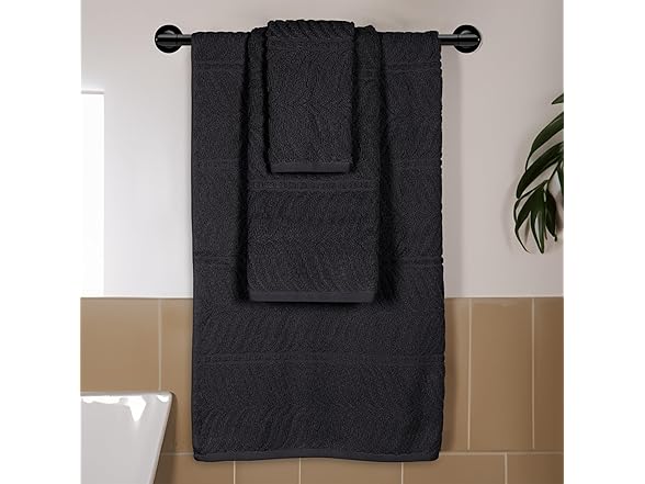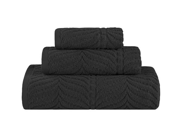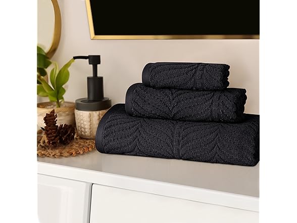 Superior Cotton Chevron 3 Piece Towel Set, Zero Twist, Quick Dry, Home Essentials, Shower, Spa, Luxury Plush Soft Absorbent Towels, Includes 1 Bath, 1 Hand, 1 Washcloth/Face Towel, Jacquard, Black
