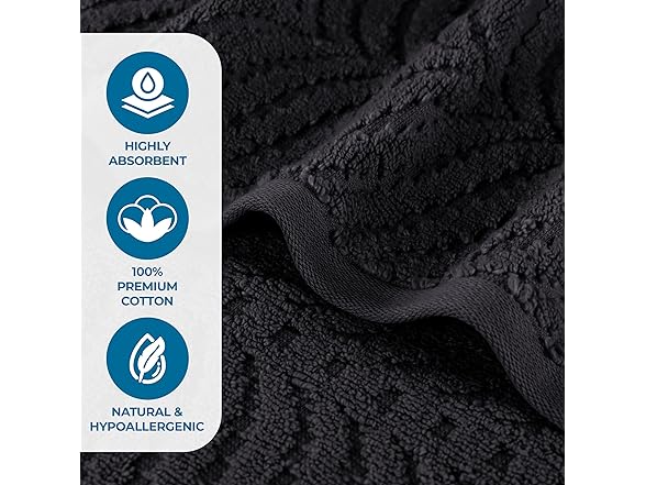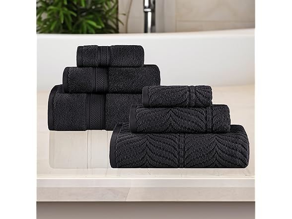 - ELEGANT DESIGN: This bountiful bundle features an assortment of solid and jacquard, chevron patterned towels for unique style; excite any master bath, powder room, or guest bathroom with this set; hanging loop allows you to easily hang each towel