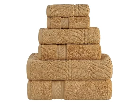 Give your bathroom a beautiful, elegant makeover with the Superior Chevron Zero Twist Cotton 6 Piece Towel Set. Expertly crafted from naturally strong and soft Cotton fibers, these impressive towels offer utmost comfort and longevity. The smooth loops of zero twist towels feel plush against your skin while offering a quick dry as you step out of the shower or bath. Adorned with both solid and jacquard, chevron designs, these unique towels will surely enhance your existing bathroom decor. Perfect for any guest or master bathroom, spa, or resort treatment, indulge in this bundle for utmost comfort.
