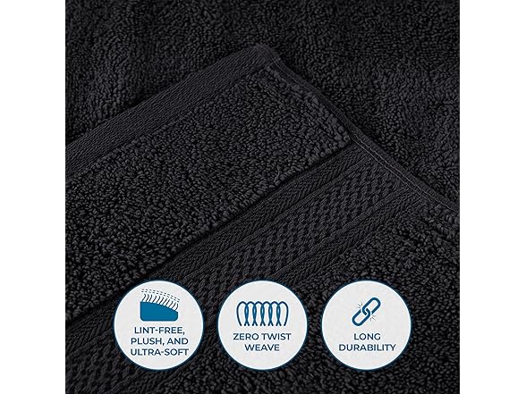 - OPULENT COMFORT: Crafted from naturally strong and soft Cotton; smooth loops of Zero Twist towels make them softer, more absorbent, and more luxurious than regularly twisted towels; Set includes: 2 face towels/ washcloth, 2 hand towels, and 2 bath towels