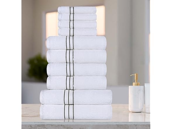 Superior Turkish Cotton Ultra-Plush 10-Piece Towel Set, Ideal for Master Bath, Guest Bathroom, Fast Drying, Shower, Spa, Face/Washcloths, Hand, Bath Towels, Absorbent, Home Basics, Charcoal
