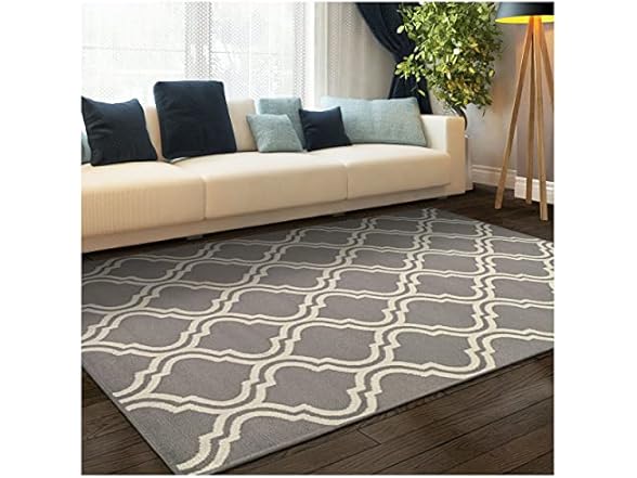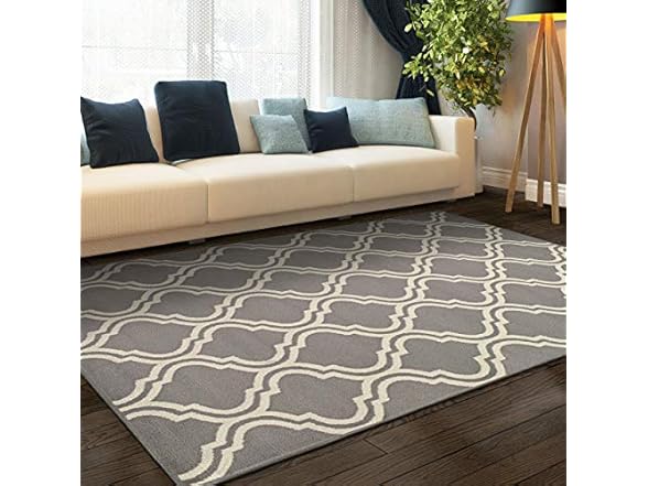 Elevate the style of your tile or hardwood floors with the the Contemporary Ornamental Double Trellis Power-Loomed Indoor Area Rug. Well-made with premium, 100-percent Polypropylene fibers and a soft 0.24" pile height, this rug can handle high-traffic areas of your home while remaining soft underfoot. This modern-style design displays a light-gray backdrop with a simple Moroccan-inspired lattice pattern in white. This rug adds elegance to contemporary or eclectic home interiors.