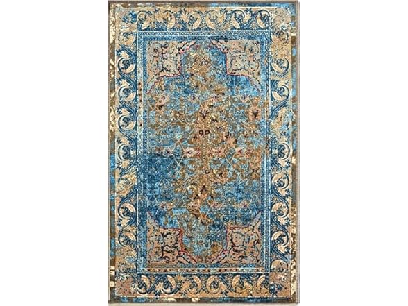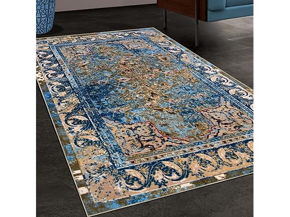 SUPERIOR Non-Slip Angeles Indoor Area Rug, Washable & Navy Blue 4' x 6'