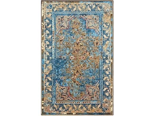 - STYLE FAVORITE: A modern take on Persian design with an octo-spiked medallion in muted burgundy and blue and a distressed finish; well-made with a durable foam backing; instantly elevate the beauty of your floors with this gorgeous rug