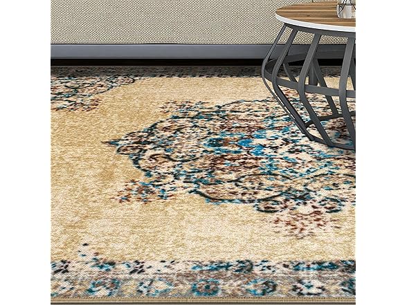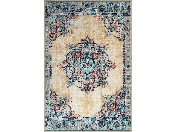 Superior Indoor Non-Slip Area Rug, Floral Floor Decor, For Living Room, Bedroom, Kitchen, Dining, Decklan, 2' x 3', Cream
