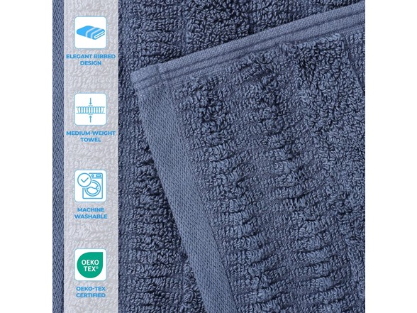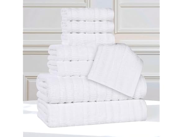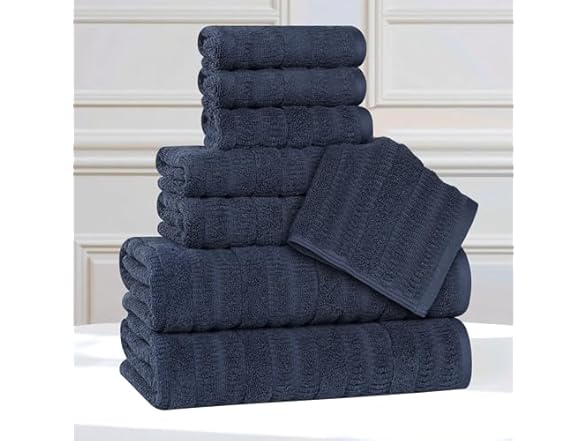 Redefine comfort with the Superior Milo Smart Twist Viscose Cotton Blend 8 Piece Towel Set. Crafted from 80% cotton and 20% viscose, these towels offer a balance of plush softness and incredible absorbency. The innovative low-twist weave provides a silky-smooth feel, while the seek, ribbed design lends a refined and modern look. Available in a variety of stylish colors, this set is the perfect addition to any bathroom, creating a serene and welcoming space.