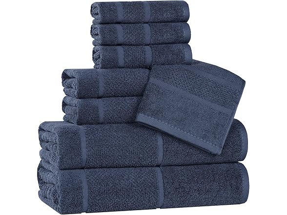 Embrace luxurious comfort with the Superior Mile Smart Twist Viscose Cotton Blend 8 Piece Towel Set. Made from 80% cotton and 20% viscose, these towels redefine your everyday routine into moments of luxury. The low-twist weave offers a velvety soft touch, delivering exceptional absorbency and a gentle caress against your skin. The timeless solid design and border detail adds an element of understated elegance, while the wide array of sophisticated colors seamlessly enhances any bathroom’s aesthetic.