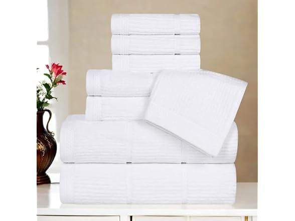 - Elevate Your Daily Rituals: Transform your bathroom into a sanctuary of self-care with this thoughtfully curated towel set; This set includes 2 Bath Towels, 2 Hand Towels, and 4 Face Towels/ Washcloths; Start and end each day with a touch of luxury