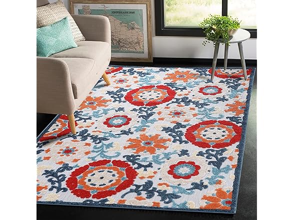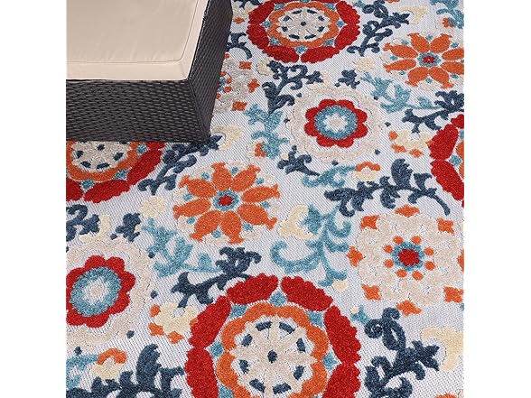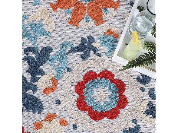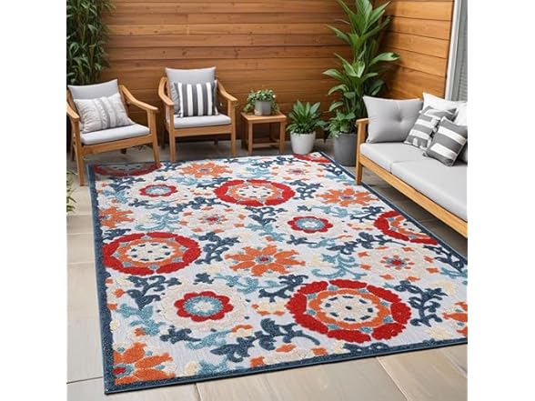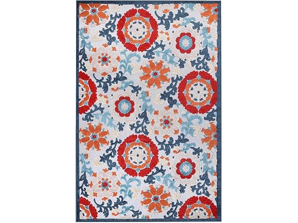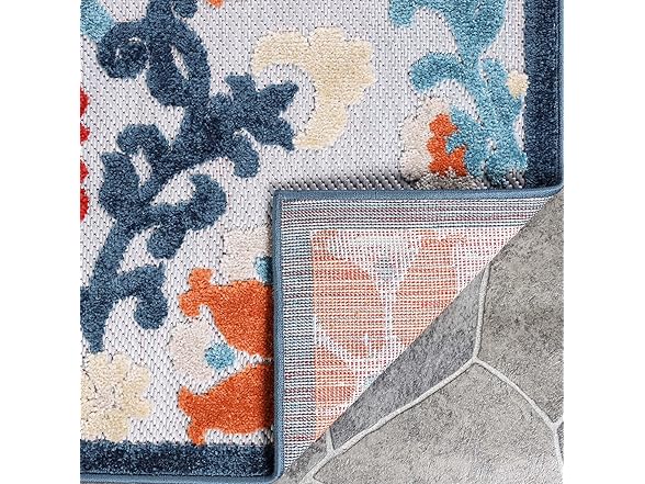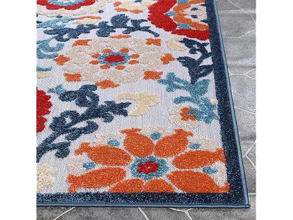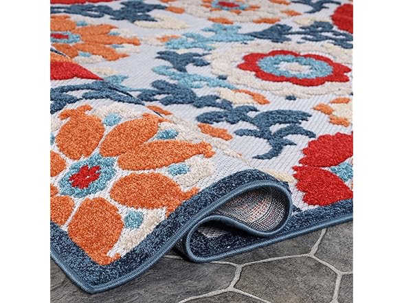Superior Petunia Indoor Outdoor Area Rug, Perfect for Patio, Poolside, Backyard, Playroom, Kitchen, Bedroom, Dining Room, Entryway, Mudroom, Floral Scroll Floor Cover