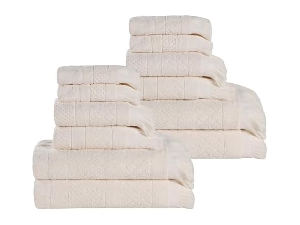 - OPULENT COMFORT: Crafted from soft Cotton; impressive absorbency and luxurious feel; naturally eco-friendly, towels are made from renewable resources that require less water; Set includes: 4 face towels/ washcloth, 4 hand towels, and 4 bath towels