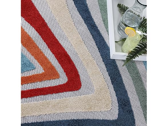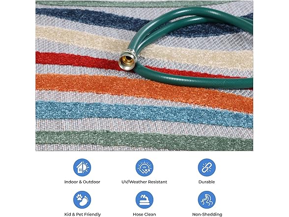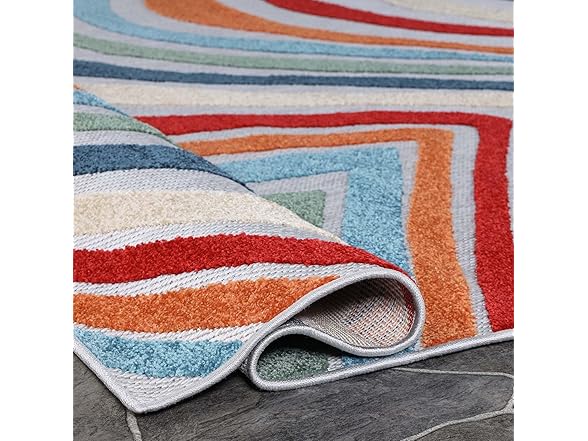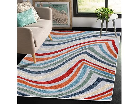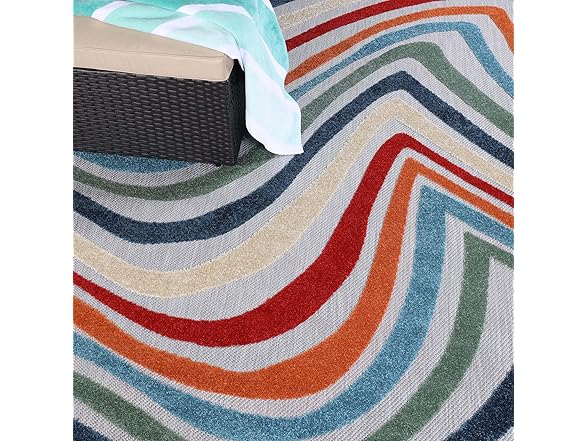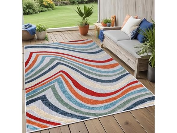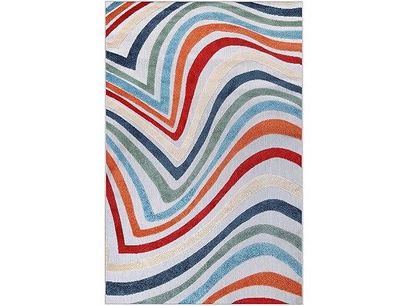 Superior Wave Indoor Outdoor Area Rug, Perfect for Patio, Poolside, Backyard, Playroom, Kitchen, Bedroom, Dining Room, Entryway, Mudroom, Coastal Striped Floor Cover, 4' x 6', Multicolor