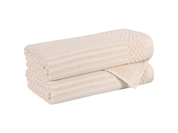Superior Cotton 2-Piece Solid and Ribbed Bath Towel Set, Bath Towels- 27" x 54", Ivory by Superior