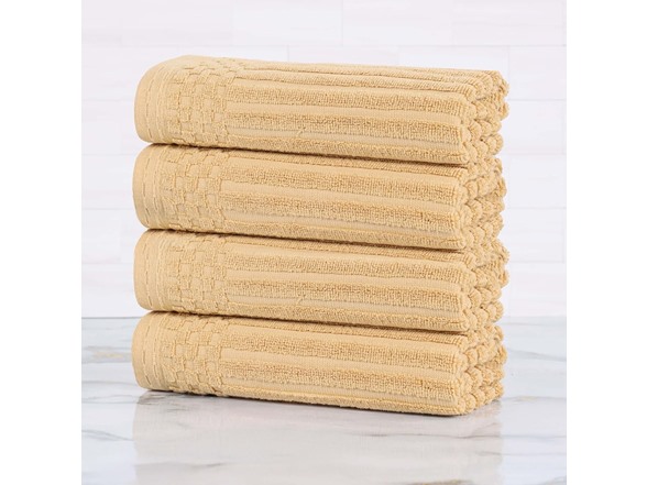 Superior Cotton Hand Towel Set of 4, Daily Use for Bathroom, Kitchen, Guest Bath, Quick Dry Small Towels, Face, Hand, Gym, Spa, Hotel, Absorbent, Essentials, Ribbed, Soho Collection, Gold