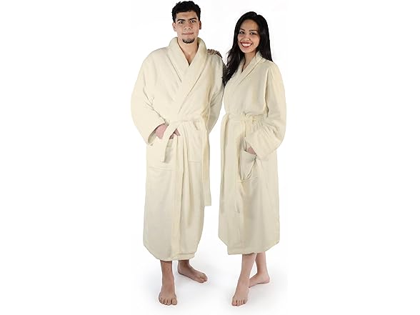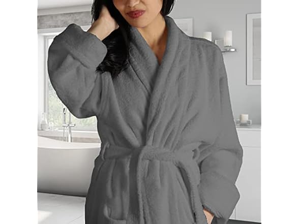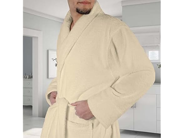 - COZY DESIGN: Features terry belt and 2 belt loops for varying heights, 2 front patch pockets, a shawl collar and fold back style sleeves. Attached loop at the neck allows towel to hang and dry quickly; plush and lightweight to wear around the house
