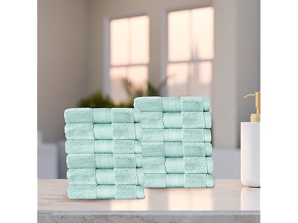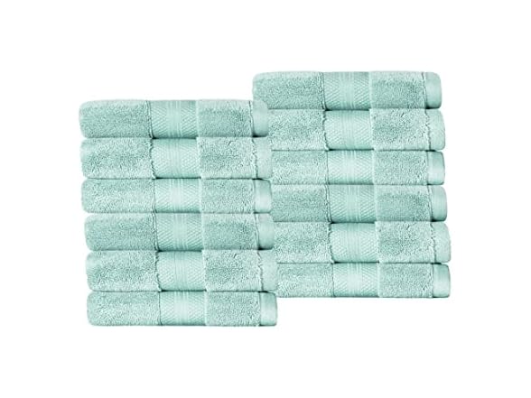 Superior Turkish Cotton 12-Piece Face Towel Set, Small Absorbent Towels for Quick Drying, Washcloths for Guest Bath, Master Bathroom, Gym, Spa, Airbnb, Apartment, Kids, Home Accessories, Dusty Aqua