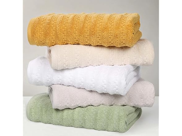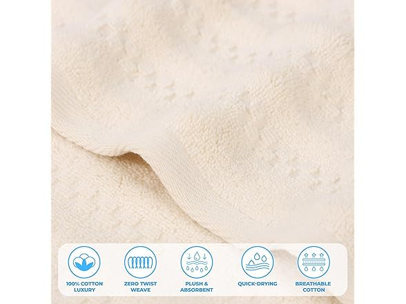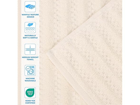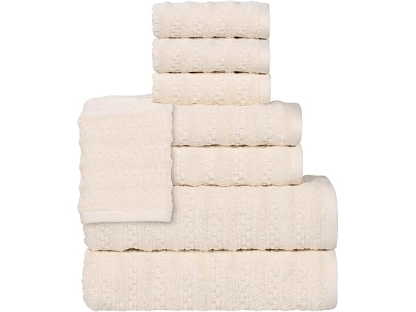 Superior Zuma Zero Twist Cotton Medium Weight Towels, for Guest Bath, Bathroom, Shower, Spa, Plush Towels, Bath Essentials, Waffle Textured Stripes, 8 Piece Assorted Towel Set, Ivory