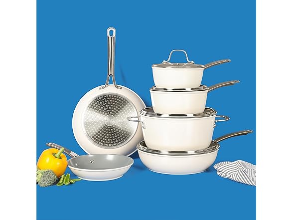- CERAMIC NONSTICK COOKWARE: easy-release interior makes more room for healthier cooking options and less time for cleanup