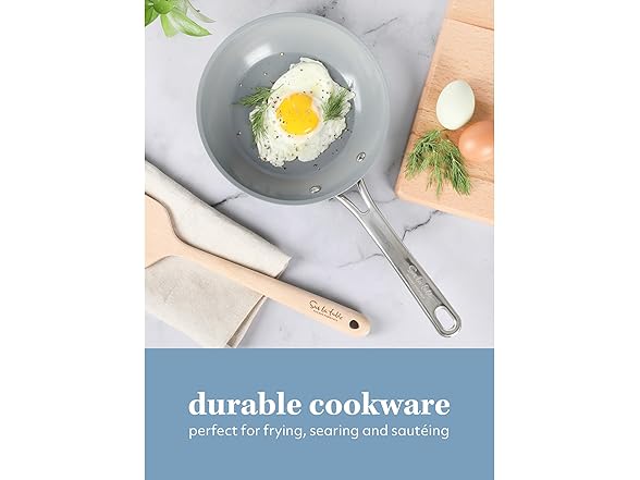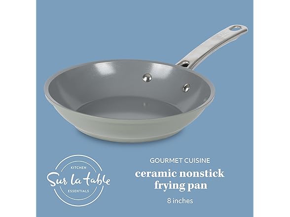 Sur La Table Kitchen Essentials 8 Inch Fry Pan PFA Free Titanium Ceramic Nonstick Interior Forged Aluminum Cookware Frying Pan - Green - Induction Compatible
