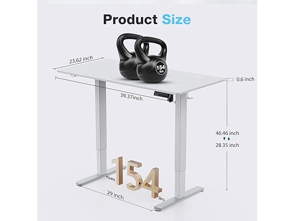 - 【High-Quality Machinery】With a noise control(under 55 dB), the durable and silent motor has been tested in many inspection processes. This high electric adjustable standing desk uses an advanced motor with longer service life, each motor can be used more than 10,000 times. This high-quality mechanical structure allows for a 154 lbs weight capacity.
