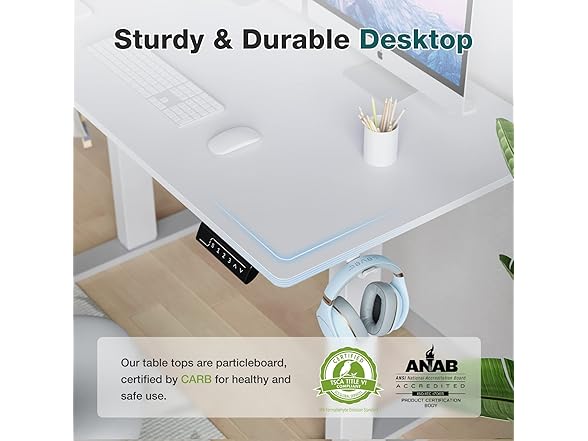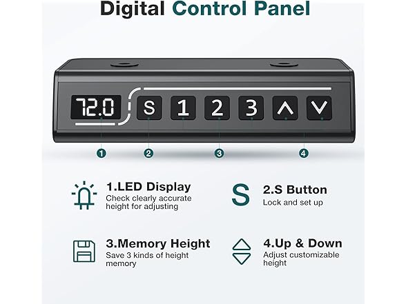 - 【Safety Protect Technology】The stand-up desk has 3 protection functions. Anti-pinch function means it can accurately detect obstacles and automatically return 2cm when it's obstructed during operation. Safety lock function, in case of power failure during operation, the fixed position will not slip off. Overcharge protection, if the load weight of this electric computer desk exceeds the loadable weight, the motor will automatically stop to prevent overload damage.