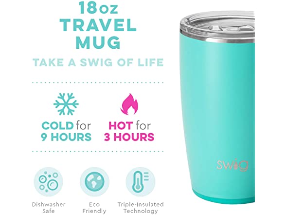 In the Box: (1) Swig Life 18oz Travel Mug with Handle and Lid, Stainless Steel, Dishwasher Safe, Cup Holder Friendly, Triple Insulated Coffee Mug Tumbler (choose your color)