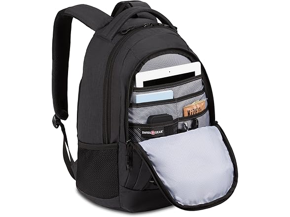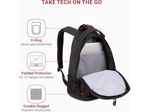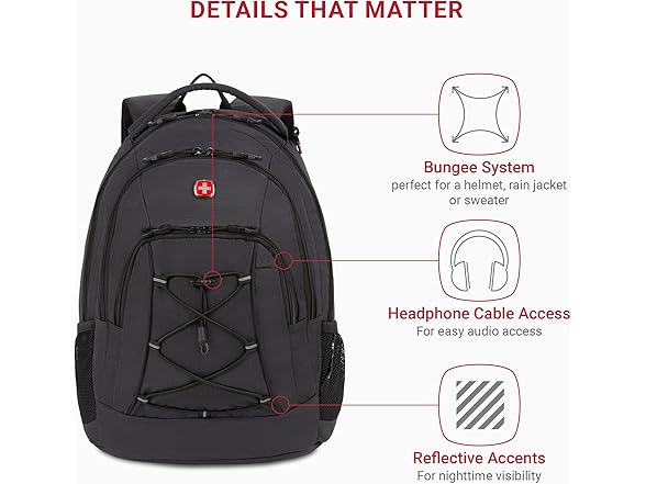 The SwissGear 1186 Special Edition Laptop Backpack is a highly functional backpack for your everyday. It features a padded compartment that fits most 13” laptops, a tablet pocket, and an organizer compartment with a removable key/fob clip and multiple divider pockets for pens, mobile phones, ID cards and other accessories. The Airflow back panel and padded, contoured straps feature breathable fabric for maximum comfort and reflective accents for improved nighttime visibility. With exterior water bottle pockets, a headphone port, and a D-Ring and bungee system on the front for attaching gear, this bag is packed with convenient features that add delight to your daily carry. Plus, this backpack comes with a 10 year warranty against defects in materials and workmanship.
