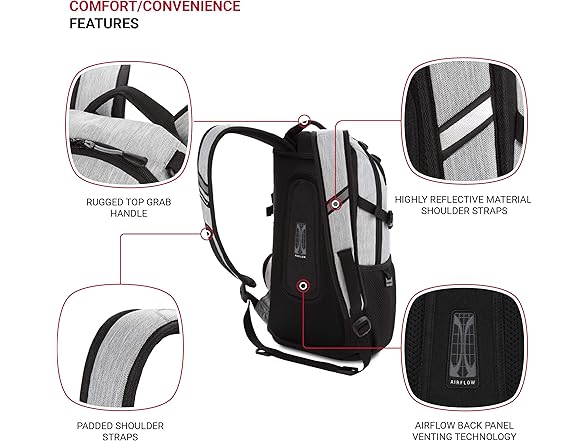 - COMFORT ON A NEW LEVEL: Slender, padded shoulder straps integrate air mesh padding for better air circulation while an Airflow back panel delivers breathability via padded, mesh panels. The shoulder straps’ thumb-ring adjusters let you adjust and hoist the pack comfortably on your back.