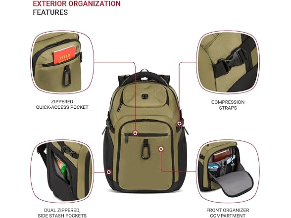 • Thoughtfully Designed: Exterior zippered pockets and compression straps, front metal gear carabiner, and a pass-thru trolley sleeve for luggage compatibility add delight and convenience to your daily carry; not intended for children under 12 years old