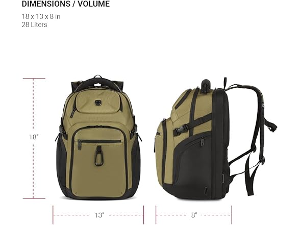 • (1) SwissGear Endure Scansmart Laptop Backpack, Olive, 17.75-Inch