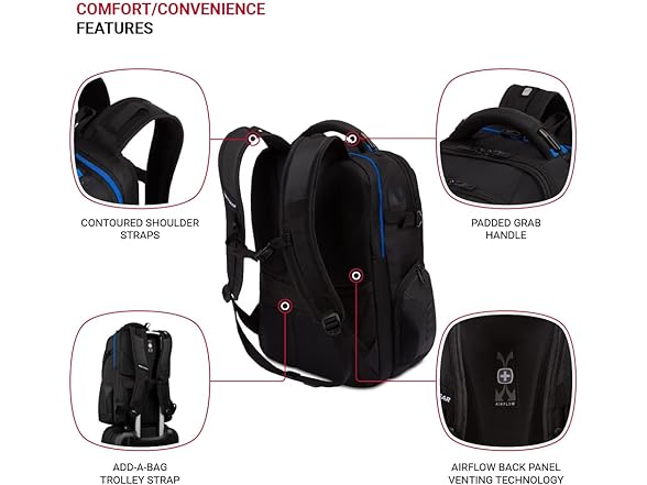- Luggage Extension Handle: A must-have travel backpack for men and women, this airport backpack includes a rear strap that fits over luggage extension handles for easy and convenient movement through airports