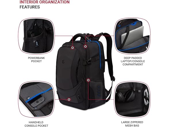 - Pro Gaming Backpack: Designed by pro gamers, our tech backpack features smart spaces for your Switch, Xbox, or PS; Also includes a 17” laptop compartment with 360° protection and multiple pockets for handheld consoles, controllers, headphones, etc.