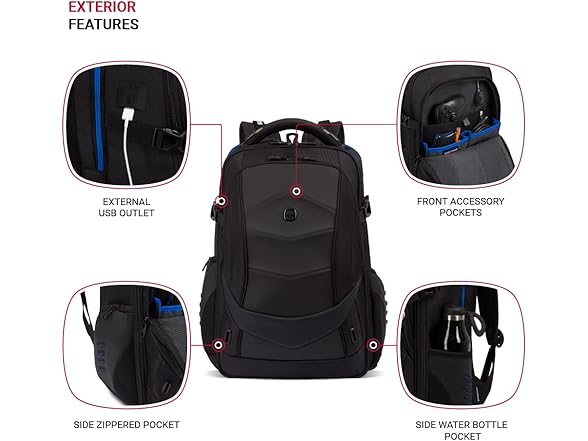 - Charge On The Go: A must-have work or school backpack for college students, this smart backpack features an external USB port and an internal battery pack pocket (battery pack not included) for easy recharging on the go