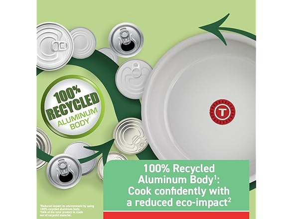 T-fal Recycled Ceramic Nonstick Fry Pan 12 Inch Oven Safe 350F Pots and Pans, Cookware Green