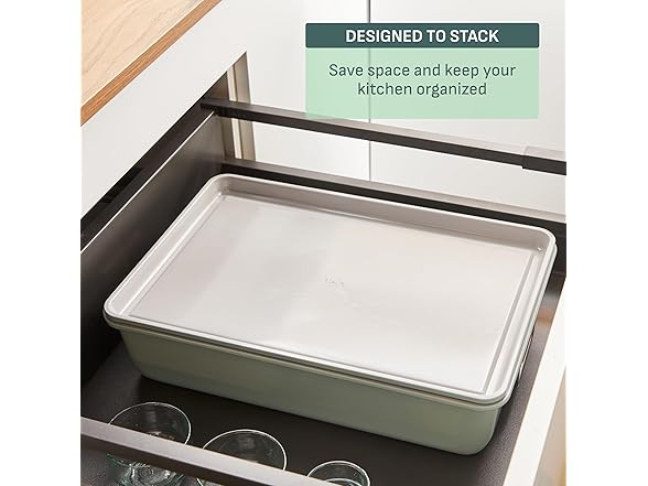 - Designed to Stack: 5-piece baking sheet set with a stackable design that saves space and keeps your kitchen organized. Includes a Cookie Sheet, Roasting Pan, Loaf Pan, 6-cup Muffin Pan, and a Square Tray