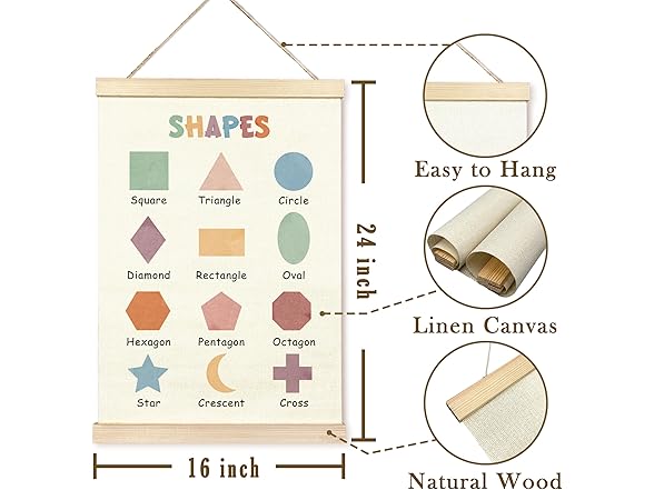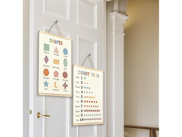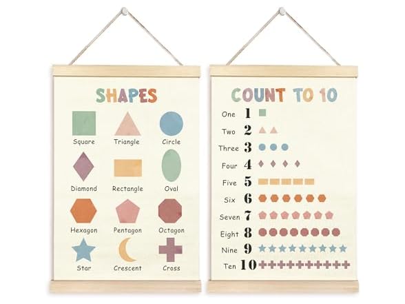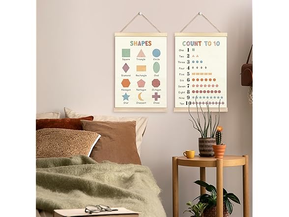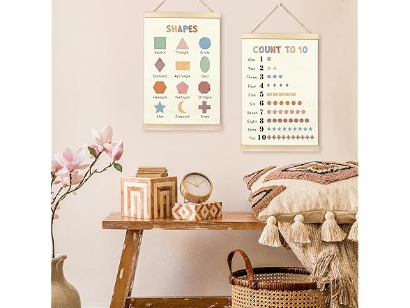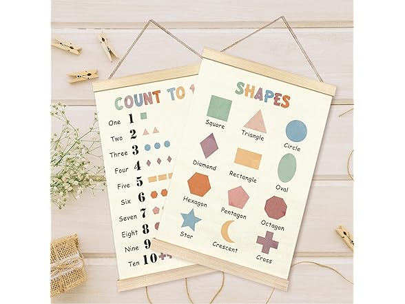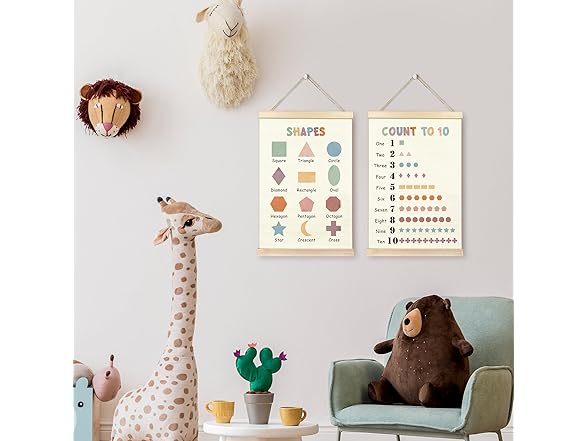 TAEDIN Numbers Shapes Wall Art Poster Hanger Frame Set of 2 - Nursery Kids Playroom Wall Decor with Wood Frames, Educational Flag Decor for Toddler Playroom Nursery, 16x24 Inches