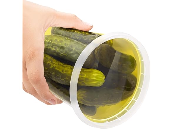 Keep your food fresh and safe with these stackable deli plastic storage containers. The airtight, leak-proof lids ensure a firm seal, protecting your food from spills, pests, moisture, and air oxidation. These containers are perfect for both liquids and solids, featuring a drip-free and spill-proof design. The stackable design maximizes space and keeps food organized and easy to find, making them ideal for refrigerators, freezers, lockers, coolers, gym bags, knapsacks, and handbags. Perfect for home use, food service businesses, and packing small travel items, these containers are versatile and practical. Store deli products like chicken or macaroni salad, hot soups, sauces, stews, noodles, nuts, green salads, pasta, fruit, and more. Use them for meal prep, storing leftovers, or giving away food to guests or customers. Made from sturdy, high-quality, 100% food-safe, BPA-free, shatter-resistant plastic, these containers offer strength, sturdiness, and flexibility. They are durable for everyday use and can withstand freezing temperatures for extended periods. These premium quality containers are lightweight, washable, reusable, and disposable. They are microwave, freezer, and dishwasher safe. Reuse them by placing them in the dishwasher, washing by hand, recycling, or disposing of them in the trash. Remember to remove the lid when using in the microwave or dishwasher. The bulk pack includes 24 round containers, each with a 32 oz capacity. The clear plastic design allows you to easily see what's inside.