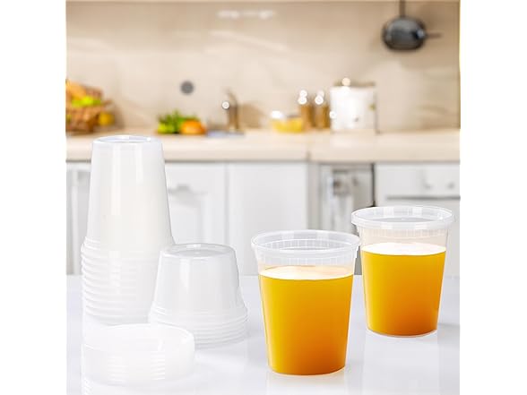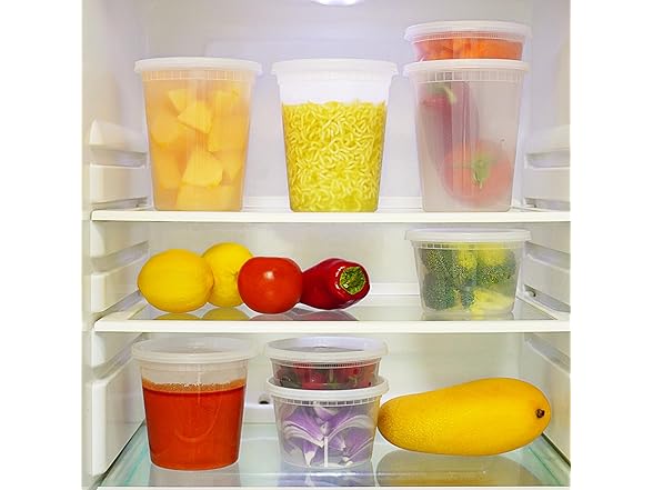 - 32 oz 24 Plastic food storage containers and 24 lids. Clear - so you can easily see what's inside. Tight sealing lids for airtight leakproof storage.