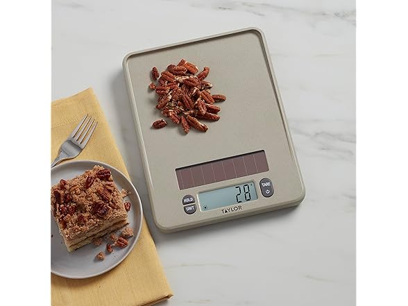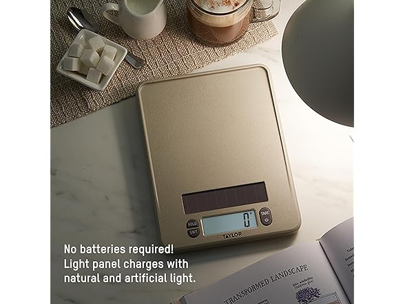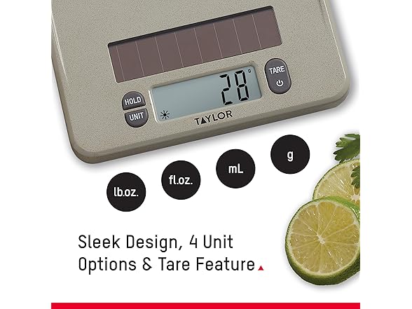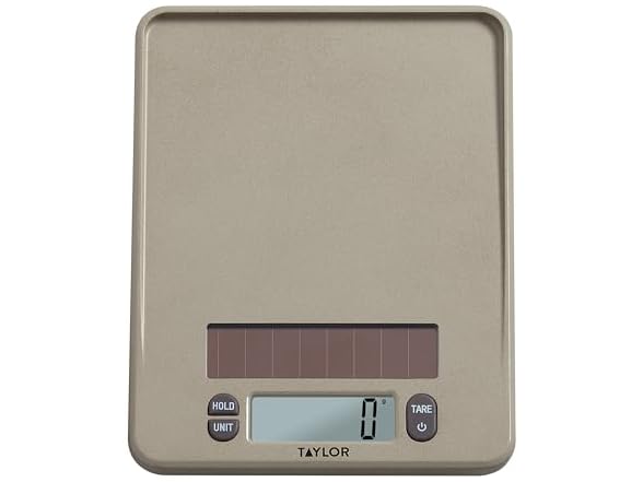 The Taylor 11lb Kitchen Scale offers an alternative energy solution to your cooking needs, powered entirely by light energy with no need for batteries. Its innovative design harnesses both natural and artificial light, providing consistent performance while reducing waste and energy consumption. With an 11-pound capacity, this scale is versatile enough for a variety of kitchen tasks, from weighing ingredients to portioning meals. The Taylor 11lb Light-Powered Kitchen Scale is a smart choice for eco-conscious cooks who value precision and efficiency.