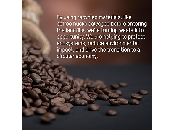 - RECYCLED MATERIALS: We blend plastic with about 10% coffee husk material. This coffee husk comes from coffee processing plants before it is thrown away. Using coffee husks helps reduce waste and makes the plastic more environmentally friendly.