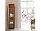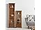 - STYLISH LINEN CABINET: Features a timeless oiled oak veneer finish with a crown molded top and antique brass knobs for a beautiful addition to your space