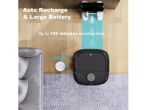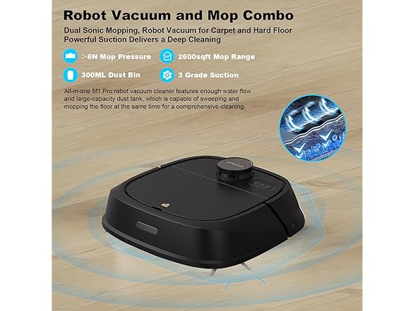 TECBOT Robotic Vacuum Cleaner and mop, with Laser LiDAR Navigation, 150Mins Max, Self-Charging, Robotic Vacuum and Mop for Home Without Cleaning Mop Base, Ideal for Pet Hair, Carpet, Hard Floor (Black)