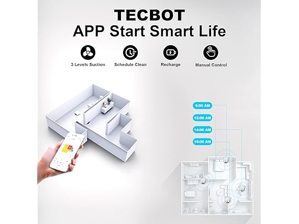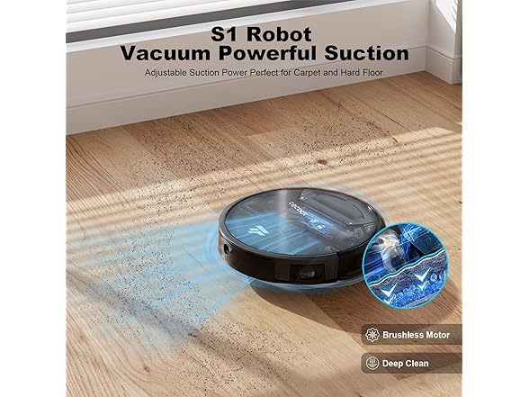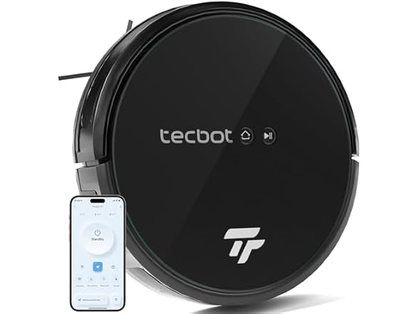 TECBOT S1 Robot Vacuum Cleaner Slim 120Mins Runtime 2-in-1 Robot Sweeping or Mopping Self-Charging Wi-Fi & App & Remote Control Robotic Vacuum Cleaner for Home Pet Hair Hard Floors, Black