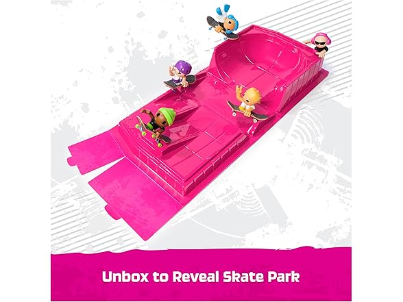 - PORTABLE SK8 PARK: Unbox to reveal a full SK8 Park, complete with a half bowl, ramp, rails and more Learn and progress your fingerboard skills with the included 4 exclusive boards with unique designs and SK8 Crew members
