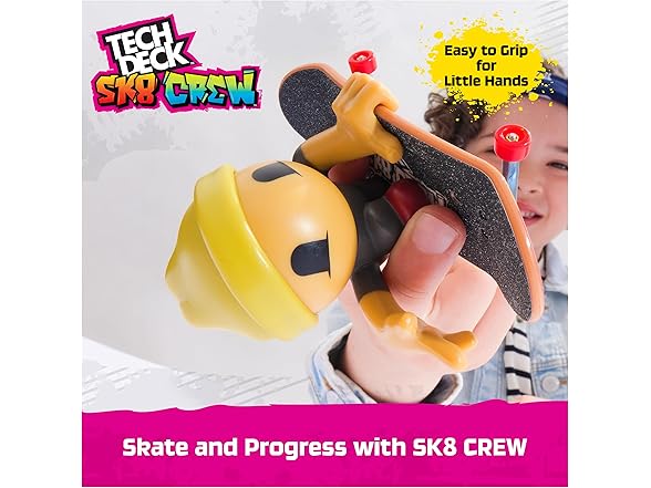 - SK8 CREW: Learn and progress your finger skateboard skills with the Sk8 Crew figure, made for young hands who want to learn about skateboarding Snap them to the fingerboards to recreate real skateboarding tricks, mastering ollies, power slides, + more