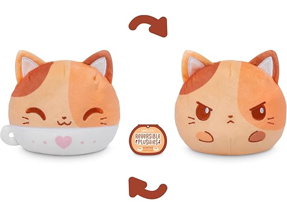 - Compact Reversible Plushie: This 4-inch coffee-scented cat plush flips between two expressive sides for quick, playful mood changes. Its small size makes it a fun companion for your desk, shelf, backpack, or travel bag.