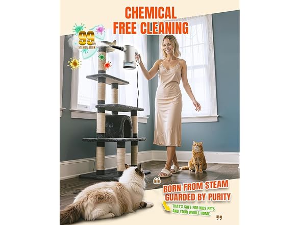 - CHEMICAL-FREE & CHILD/PET SAFE: Worry-free cleaning around kids, pets, and on delicate fabrics, giving you extra peace of mind while cleaning. The TEEVOGO handheld steam cleaner for home shuts off automatically when the water tank is empty to prevent overheating, making it ideal for sanitizing homes with children and pets