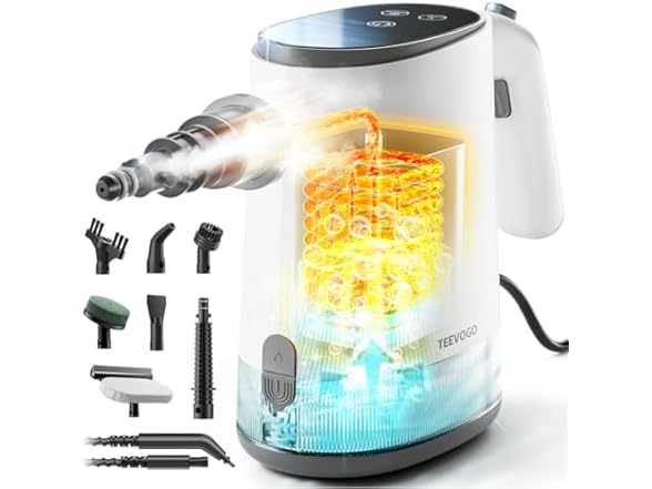 - POWERFUL PRESSURIZED HOT STEAM : The TEEVOGO 1200W handheld steam cleaner heats up in just 15 seconds, delivering 230°F high-temperature steam for immediate cleaning results. It generates strong, pressurized steam to remove built-up gunk from bathroom grout, floor, kitchen corners, and other tight spots