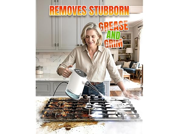 - MULTI-PURPOSE STEAMER FOR CLEANING: Whether you're dealing with stubborn grout in the bathroom, greasy surfaces and floor in the kitchen, or refreshing your car seats, this steam cleaner is up to the task. It's perfect for cleaning furniture, carpets, and even hard-to-reach windows. It cleans all types of surfaces, including floor, countertops, sinks, and appliances with ease
