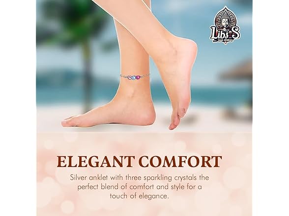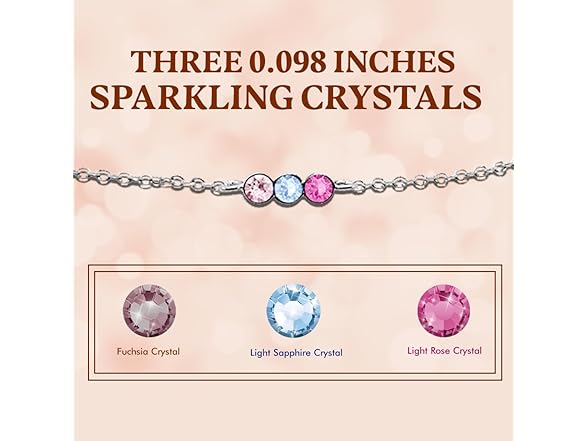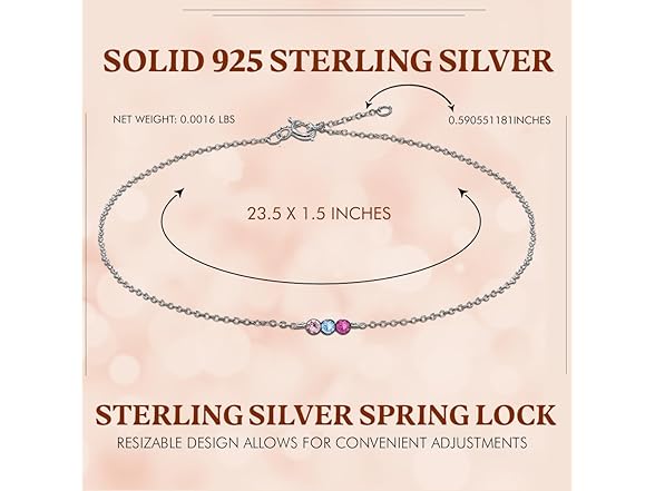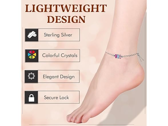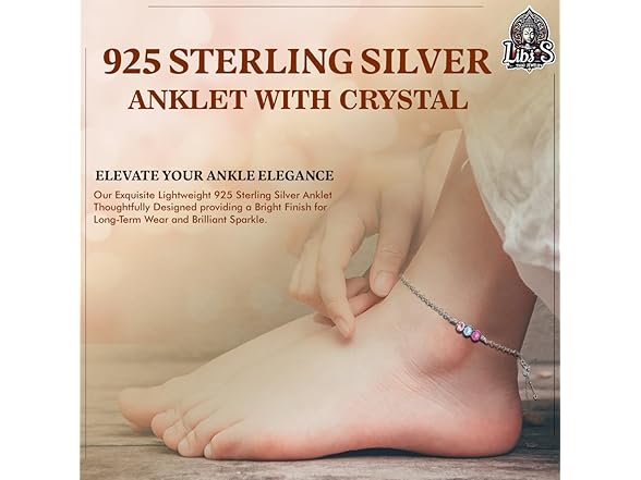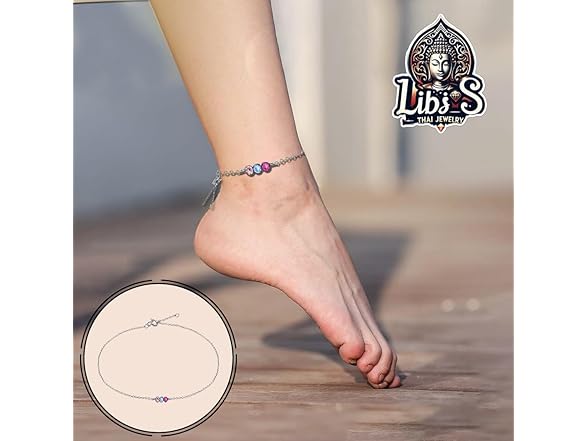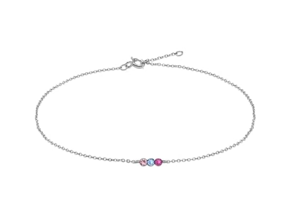 Thai Jewelry 925 Sterling Silver Anklet - Lightweight, Nickel & Lead-free 3 Vibrant Crystals Ankle Bracelet with Spring Lock - Elegant Jewelry for Women - Ideal Gift for Friends & Loved Ones